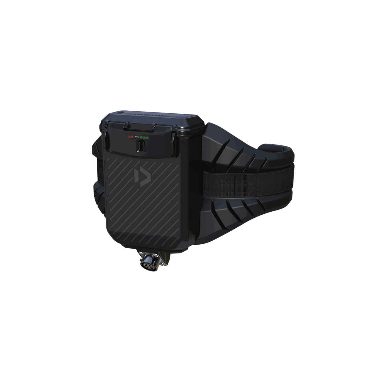 Unlike conventional systems that mount the batteries on the mast top plate or the board, the Duotone Foil Assist batteries (2 x 1 kg) are placed in a waterproof box attached to a comfortable waist harness. This arrangement ensures that the board-foil setup remains perfectly balanced despite the motor, preserving the pure feel of foiling as much as possible. A backpack with batteries has the disadvantage of placing weight on the shoulders, which can disrupt balance during turns and quick movements. With the harness, the weight sits on the hips, where it does not affect your balance, and you have full freedom of movement in your upper body. You will hardly notice the weight of the harness (approximately 3.76 kg, including the box and batteries) after just a few minutes.The connection between the batteries and the motor is made via a cable that runs along a shorter leash from the battery box to the top plate of the mast. The board leash is attached below the cable port of the battery box to the harness. The receiver for the remote control is mounted in the lid of the battery box, ensuring a more reliable connection between the remote and the motor, as the Bluetooth signal is not disrupted by water.The eHarness has been designed with a clear focus on safety and user-friendliness. The magnetic buckle and the Velcro neoprene strap allow for quick and easy removal. With the adjustable buckle, you can customize the harness to fit your individual waist size. If you need to detach the harness underwater, you can easily do so with a quick tug. Additionally, the harness is made from non-water-absorbing materials and features built-in buoyancy, allowing it to float independently and not pull you down in the water. To prevent the battery box from opening under water pressure, it is protected with a neoprene cover that can be opened using a large zipper.