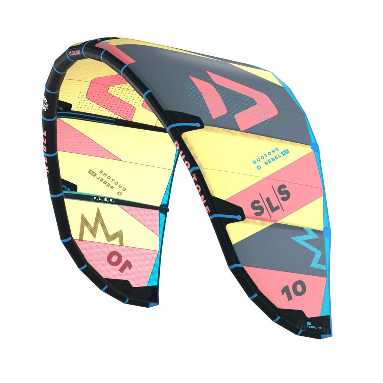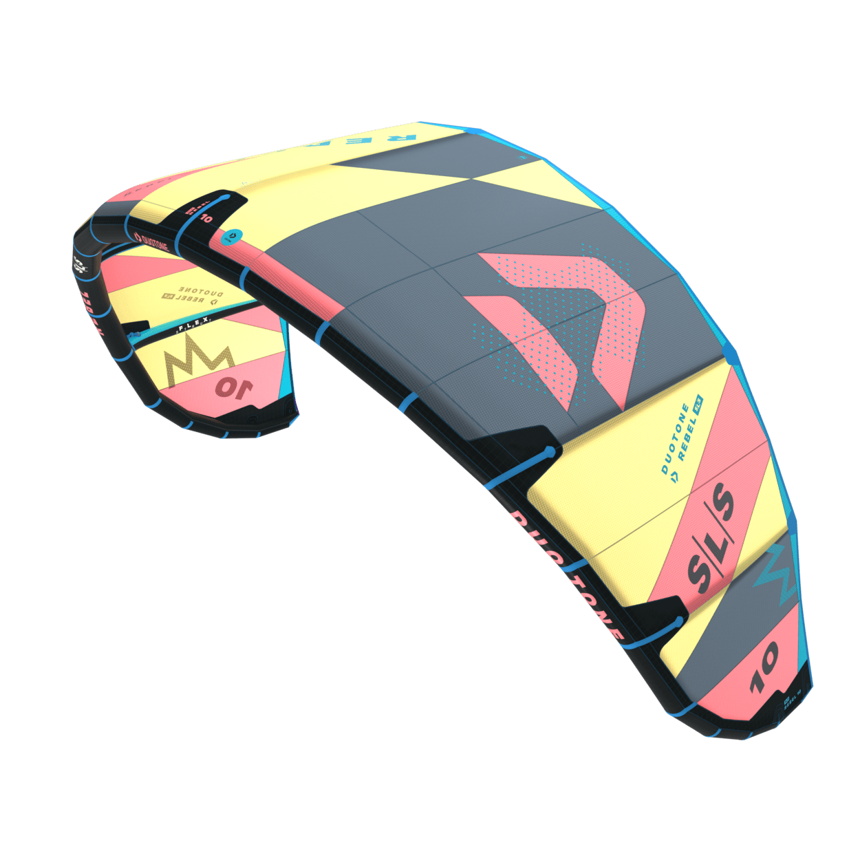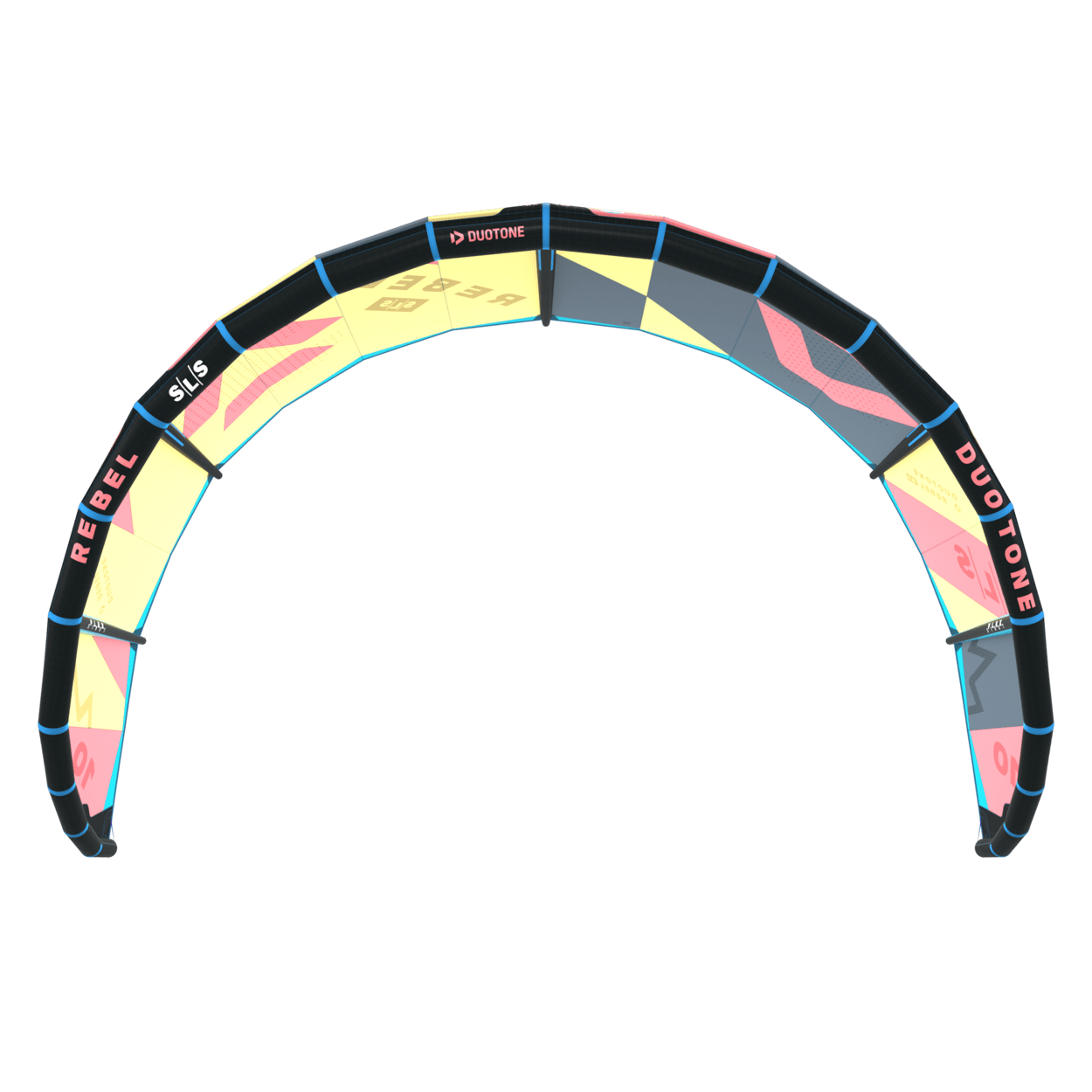 Introducing the redesigned Rebel SLS for 2024, a true icon that continues to push boundaries and redefine the riding experience for a new generation of riders. This year, the design team focused on the wing tips to improve the handling and turning speed. In addition, the canopy tension was also optimised to improve the gust handling and enable the kite to keep its shape no matter the wind strength. The combination of Penta TX and Trinity TX creates a remarkably rigid kite that maintains its shape even in challenging gusty conditions, providing consistent and smooth power delivery. The addition of Flex Struts allows the tips to twist, resulting in intuitive handling and exceptionally dynamic steering. While the Rebel SLS offers impressive power, it also provides unparalleled control. With its instantaneous depower, you can confidently navigate strong conditions and achieve extraordinary heights during big air jumps. The explosive take-off and vertical boost of the kite will propel you to new levels, while the extended hangtime will make you feel as if you're floating in the air, experiencing longer flight times with every jump. Even in light winds, the Rebel SLS remains highly capable, delivering ample low-end power through quick upstrokes, thanks to its lighter weight. This reduced weight also improves drift, allowing you to swing under the kite during landings and easily recover it. The Rebel SLS is a perfect choice for freeride enthusiasts and those seeking massive jumps with long hangtimes. Light up the height scores at your local spot and go extra-large with the new Rebel SLS.