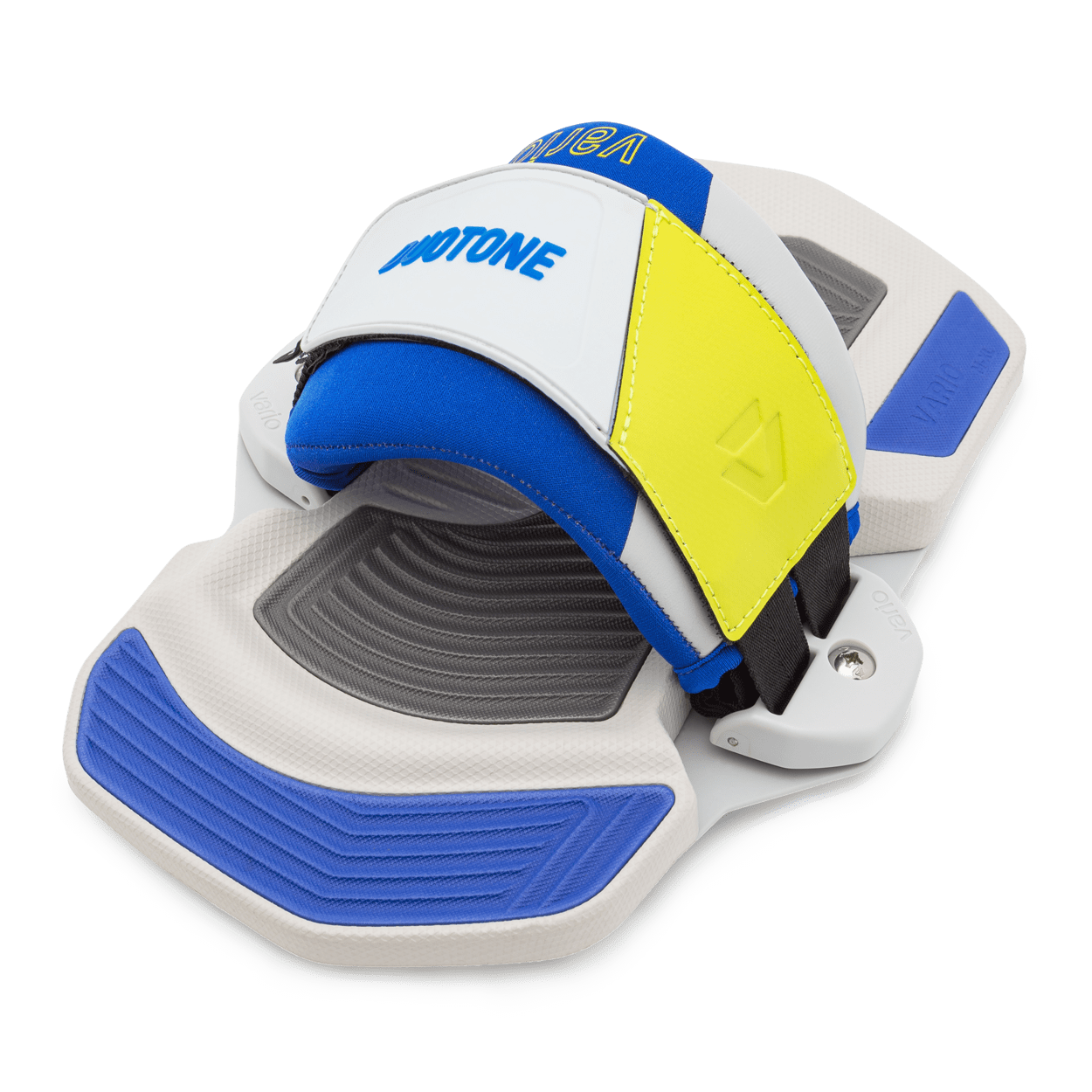 An essential part of the Duotone collection, the Vario Combo footpads and straps are compatible with all Duotone boards of every generation and now available in two new sizes, XS-S / 33-38 and M-XL / 39-47, to fit most feet barefoot or in boots. The new 2 degrees tilted pad is protecting your knees and delivering great riding comfort. The optimized toe ramp shape is now offering even better hold. Its proven anti-slip features guarantee a firm grip for optimum communication between you and the board. The strap inserts and track system ensure that the strap's width and pad's stance can be easily mounted on the board and adjusted when needed. The advanced Velcro closure offers compatibility across a broad range of sizes and is quick and easy to use.